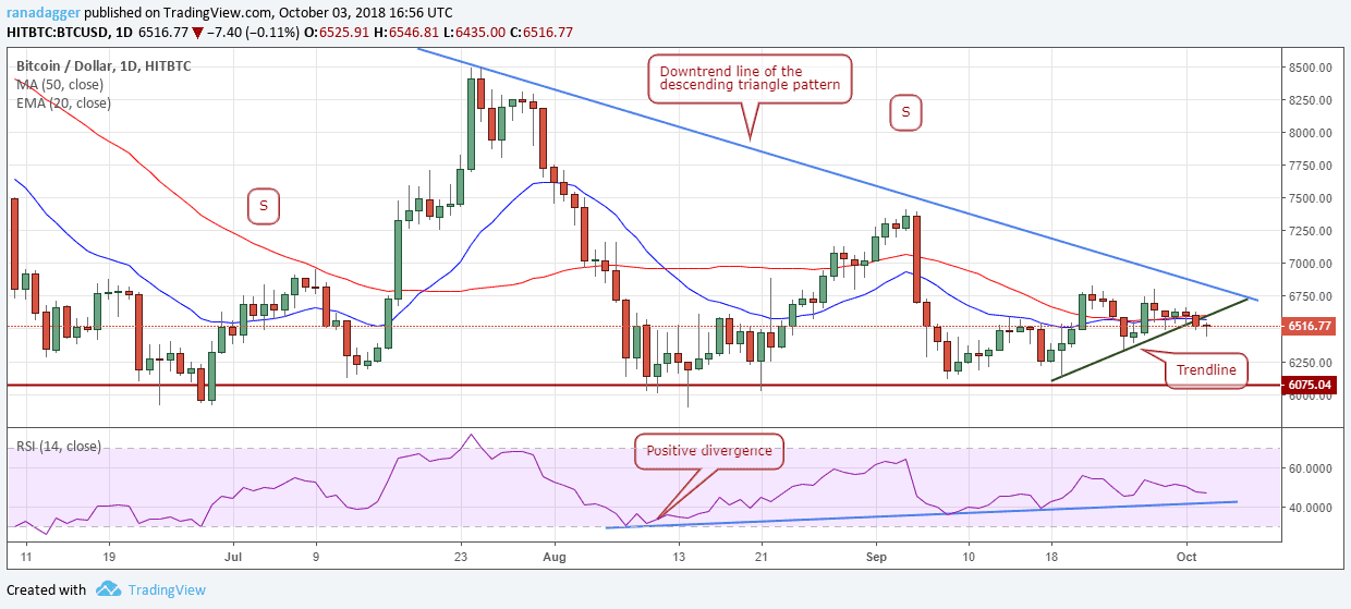 A break out of the downtrend line and $6,831.99 can propel the pair to $7,400, which in turn might act as a strong resistance.
