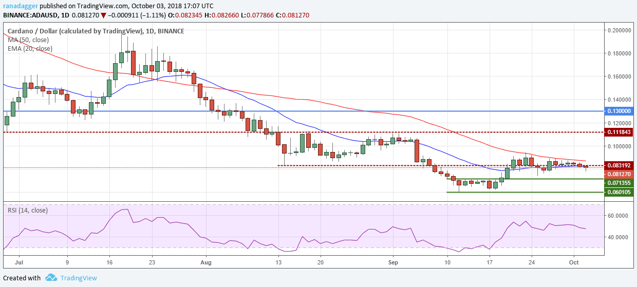If the bears succeed in sustaining below the 20-day EMA, the ADA/USD pair can drop to the next support at $0.071355.