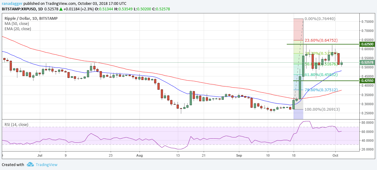 A consolidation after a sharp run-up is to be expected. The XRP/USD pair might resume its uptrend if it breaks out and sustains above $0.625.